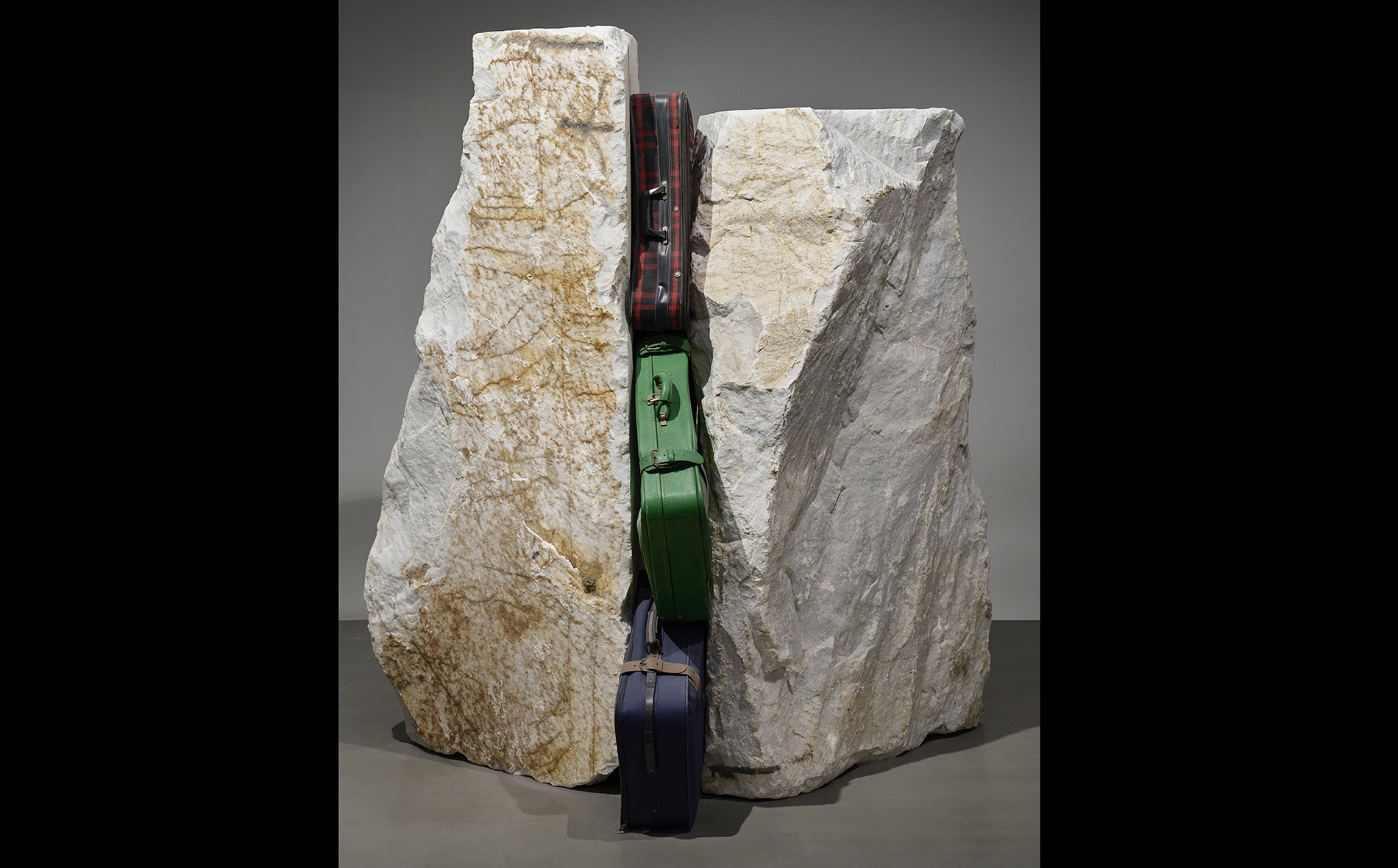 The artist’s explorations of the stone blossom into a series of works, which incorporate sound, images, and objects in a fusion that reflects different facets of the materials specific to the sculptural space of the exhibition. From his sculptures with stone formations, some with fossilised structures, to his installations with objects, his site-specific works create a dialogue with a particular setting. They are interwoven in a way that intensifies viewers’ perceptions. The meaning can only be ascertained as the viewer moves through space, that is, through the space of each sculpture and the space of the installation as a whole. No matter which path is chosen, the viewer is always within the continuum of the sculptural field. The arrangement of the works in the galleries generates passages of space that are distinctly different—narrow and wide, compressed and elongated, modest and towering—and always unanticipated. The viewers are encouraged to explore the work from various perspectives.
